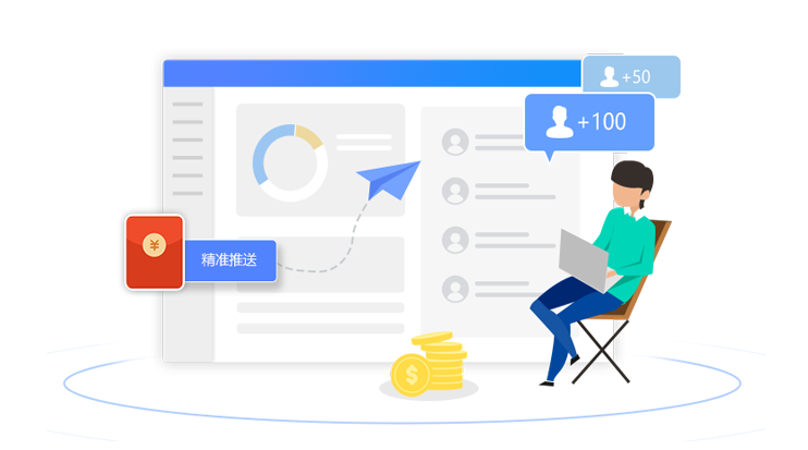 支持對(duì)海量的客戶(hù)以及客戶(hù)群,推送消息、甚至小程序、優(yōu)惠券等,并可追蹤效果。